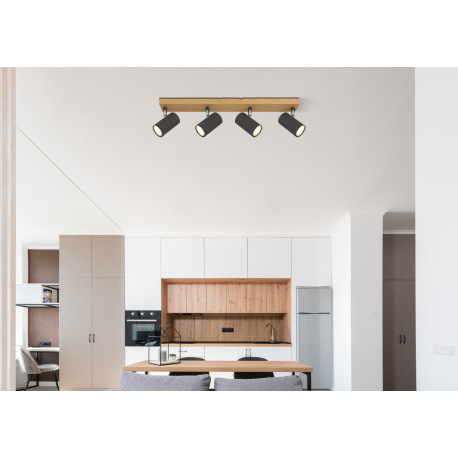 Stropné svietidlo, kov grafit/čierny/vzhľad dreva, DxŠxV:560x60x120mm, bez žiaroviek 4x GU10, max. 3