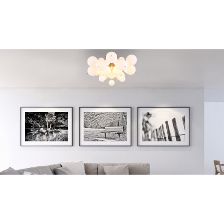 Stropné svietidlo, kov nikel matný, sklenené gule biele, kábel PVC čierny, ø: 550 mm, V: 280 mm, skl