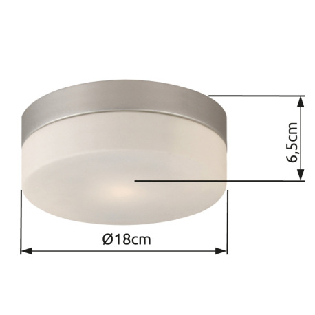 Stropné svietidlo, kov nikel matný, sklo biele, Ø 180, V: 65, bez žiarovky 1xE27, max. ILLU 60W 230V