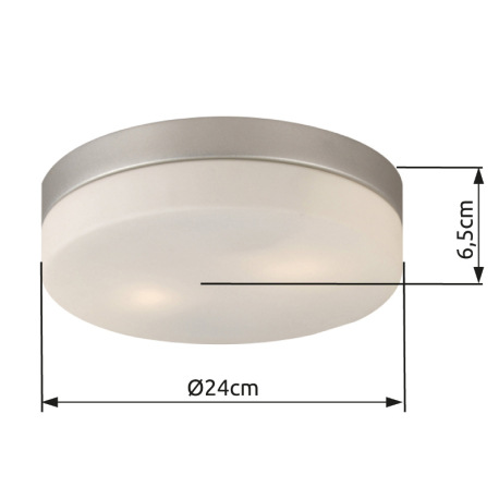 Stropné svietidlo, kov nikel matný, sklo biele, Ø 240, V: 65, bez žiaroviek 2xE27, max. ILLU 40W 230