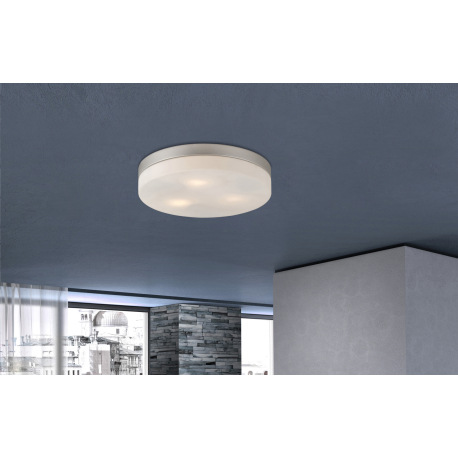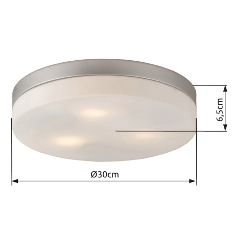 Stropné svietidlo, kov nikel matný, sklo biele, Ø 300, V: 65, bez žiaroviek 3xE27, max. ILLU 40W 230