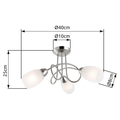 Stropné svietidlo, kov, nikel matný, sklo imitácia prasknutého skla, Ø 400, V: 250, bez žiaroviek 3x