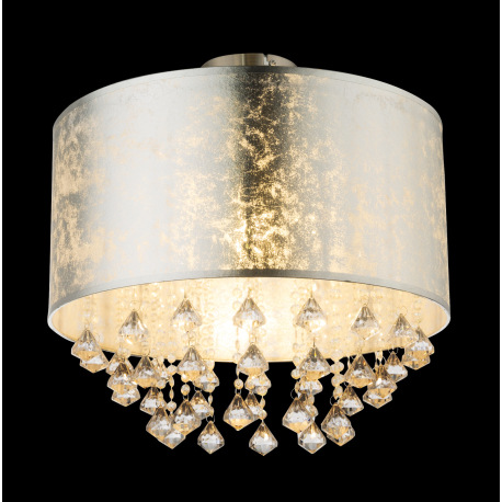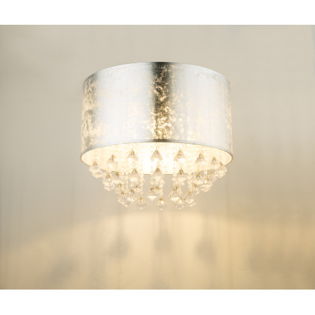 Stropné svietidlo, kov nikel matný, textil strieborný, akrylové krištále priehľadné, Ø400, V:380, be