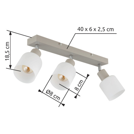 Stropné svietidlo, kov, piesková matná, kov chrómovaný, sklo biele, DxŠxV: 410x80x185mm, bez žiarovi