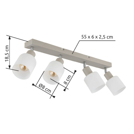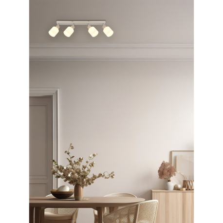 Stropné svietidlo, kov, piesková matná, kov chrómovaný, sklo biele, DxŠxV: 560x80x185mm, bez žiarovi
