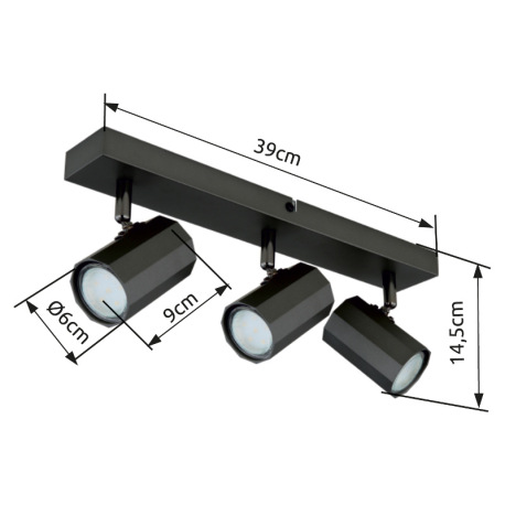 Stropné svietidlo, kov sivý matný, hliník sivý matný, DxŠxV: 390x60x145mm, bez žiaroviek 3x GU10, ma
