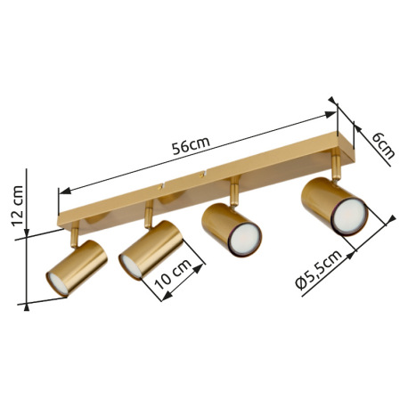 Stropné svietidlo, kov zlatej farby brúsený, DxŠxV: 560x60x120mm, bez žiaroviek 4x GU10, max. 35W 23