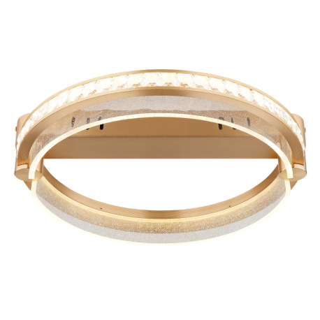 Stropné svietidlo, kov zlatej farby, hliník zlatej farby brúsený, K5 krištále číre, akryl číry, stmi