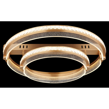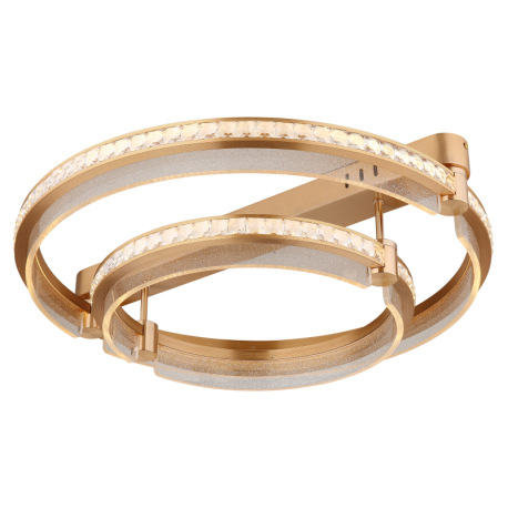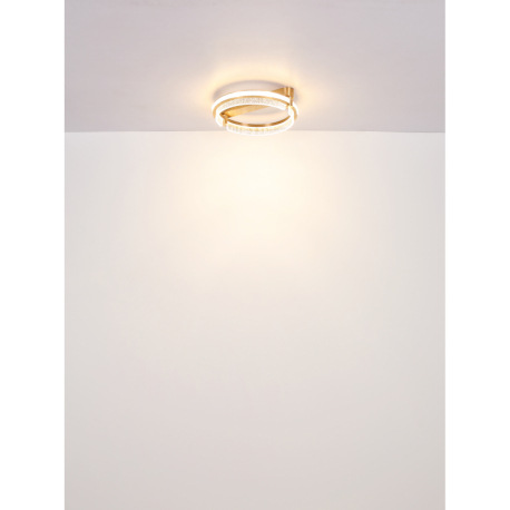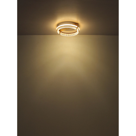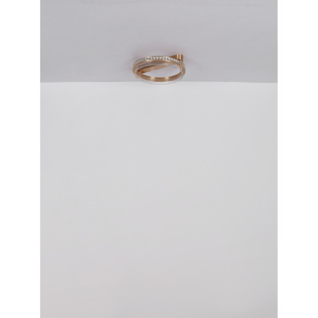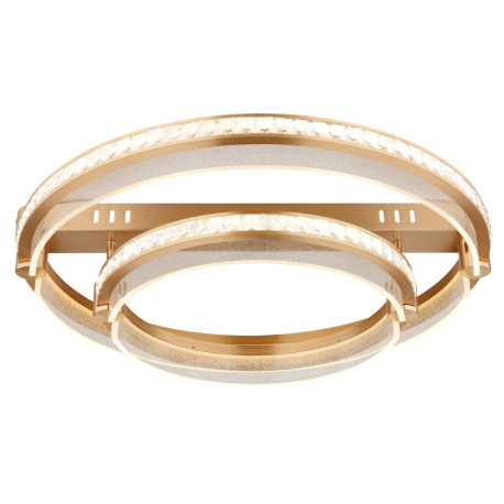 Stropné svietidlo, kov zlatej farby, hliník zlatej farby brúsený, krištále K5 číre, akryl číry, stmi