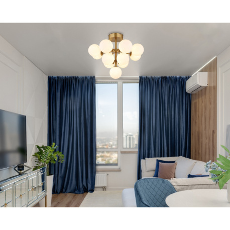 Stropné svietidlo, kov zlatej farby, sklo biele, ø: 560 mm, V: 430 mm, bez žiaroviek 13xG9 LED, max.