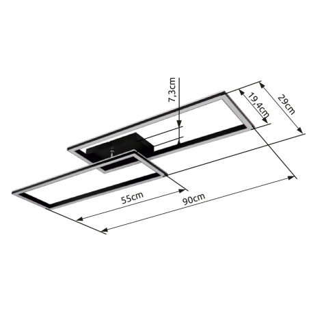 Stropné svietidlo kov/hliník čierny, akryl biely, stmievateľné, prepínanie nástenným vypínačom, meni