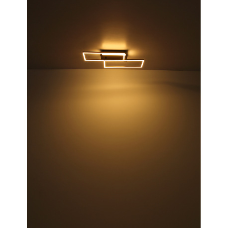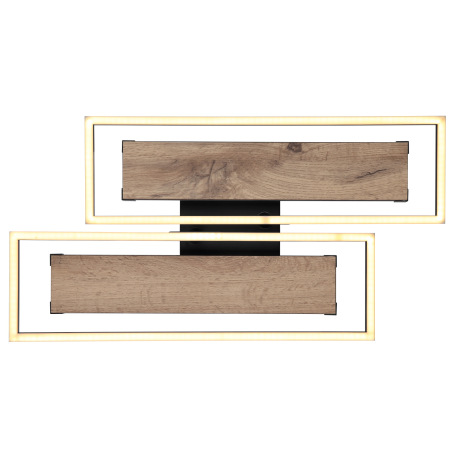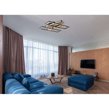 Stropné svietidlo, kov/hliník čierny matný, MDF so vzhľadom dreva, plast opál, niekoľko úrovní cez n