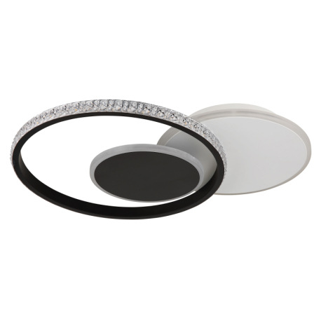 Stropné svietidlo, matný biely kov, matný čierny kov, akryl biely, číre plastové krištále, DxŠxV: 45