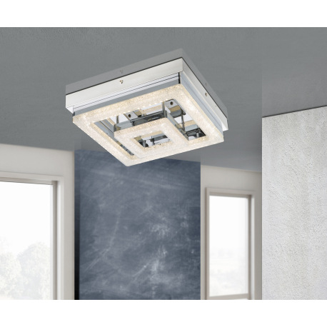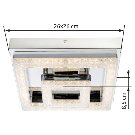 Stropné svietidlo, nerezová ocel, biely akryl, akrylové krištále priehľadné, DxŠxV: 260x260x85 vráta