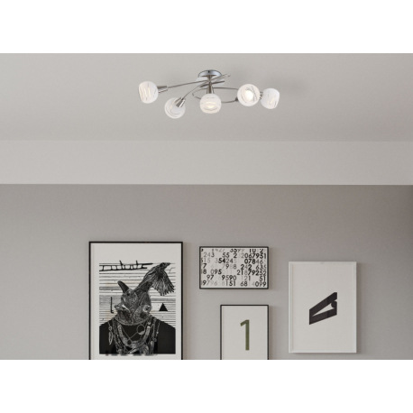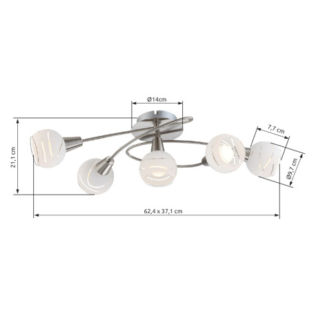 Stropné svietidlo, nikel matný, sklo biele, DxŠxV:624x371x211, bez žiaroviek 5xE14, max. 40W 230V