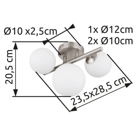 Stropné svietidlo, nikel, sklo biele, DxŠxV: 280x210x190mm, sklo ø: 2x10cm, 1x12cm, vrátane žiarovie