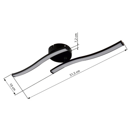 Stropné svietidlo, plast čierny, plast biely, výkyvné rameno, DxŠxV: 515x100x72mm, rozmery ramien: 3
