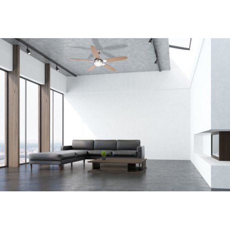 Stropný ventilátor, chróm, nikel matný, 3 rýchlosti, 2 smery otáčania, ťahový vypínač, ø:1320, V:406