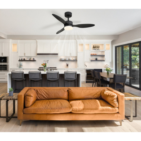 Stropný ventilátor, kov čierny, plast biely/čierny, stmievateľný, niekoľko úrovní pomocou nástenného