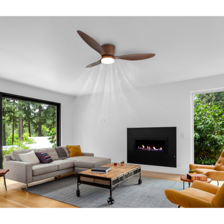 Stropný ventilátor, kov/plast imitácia dreva, stmievateľný, viac rýchlostí pomocou nástenného vypína