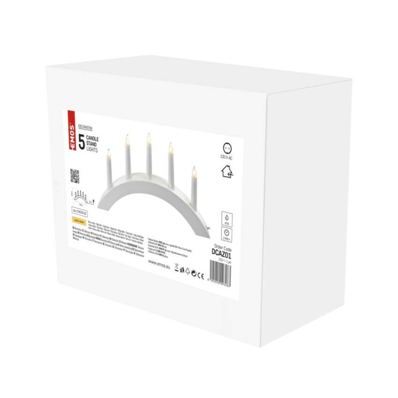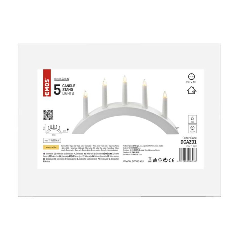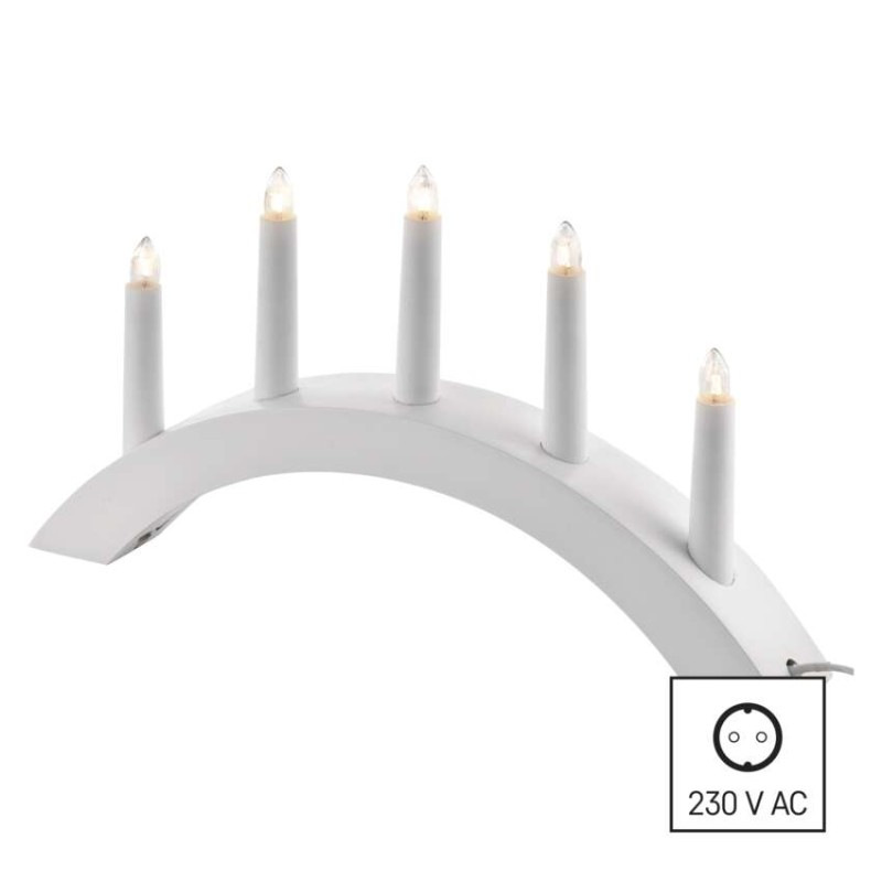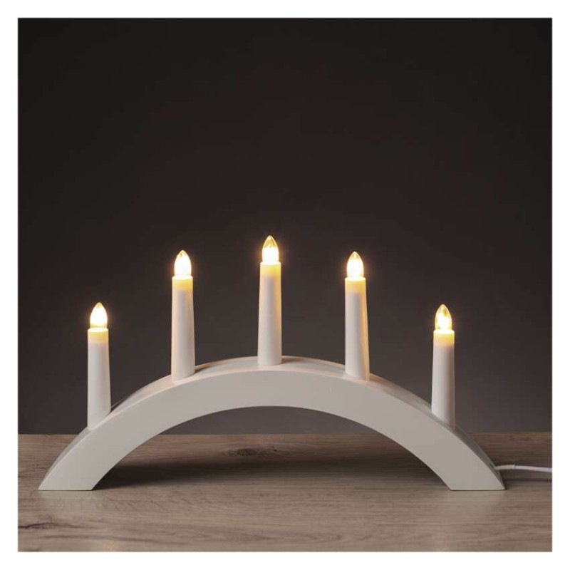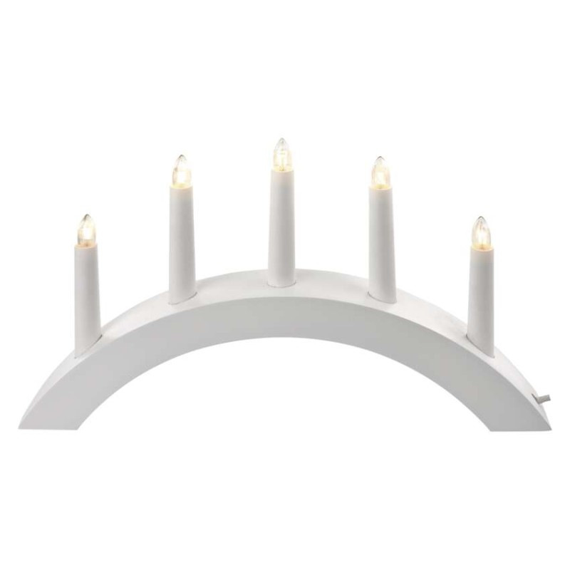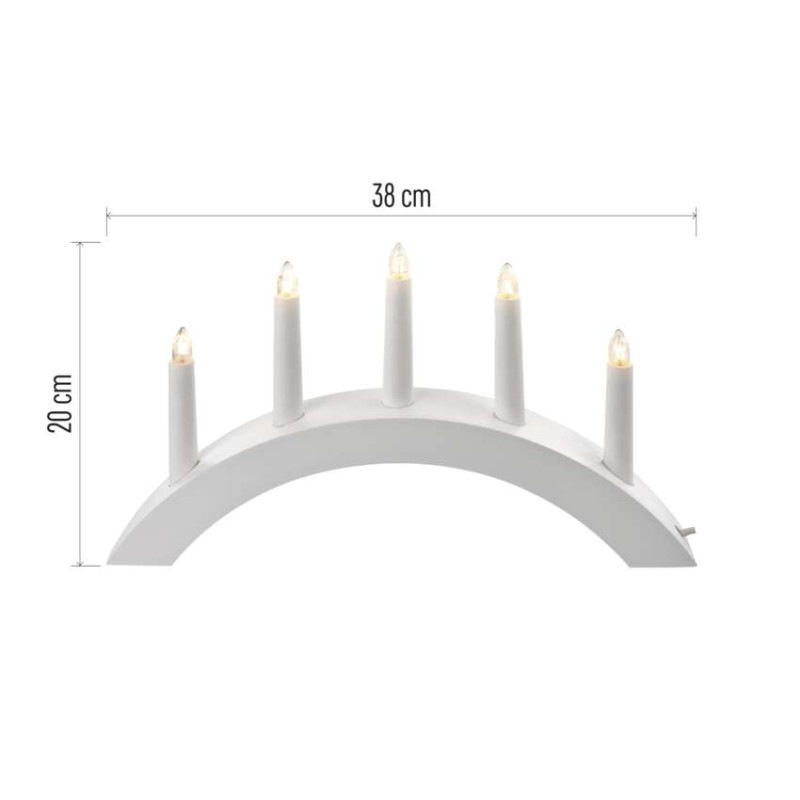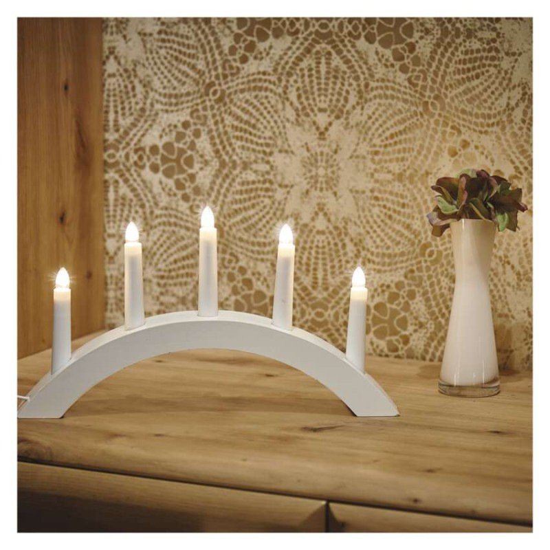 Svietnik na 5x žiarovku E10 drevený biely, oblúk, 20x38 cm, vnútorný, teplá biela