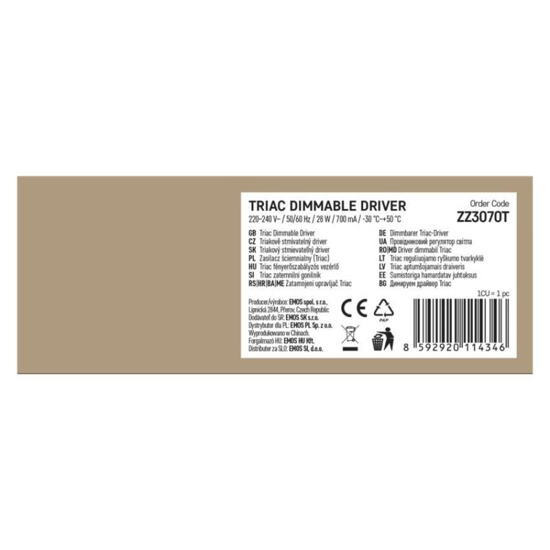Triakový stmievateľný ovládač pre LED svietidlo 700mA 28W