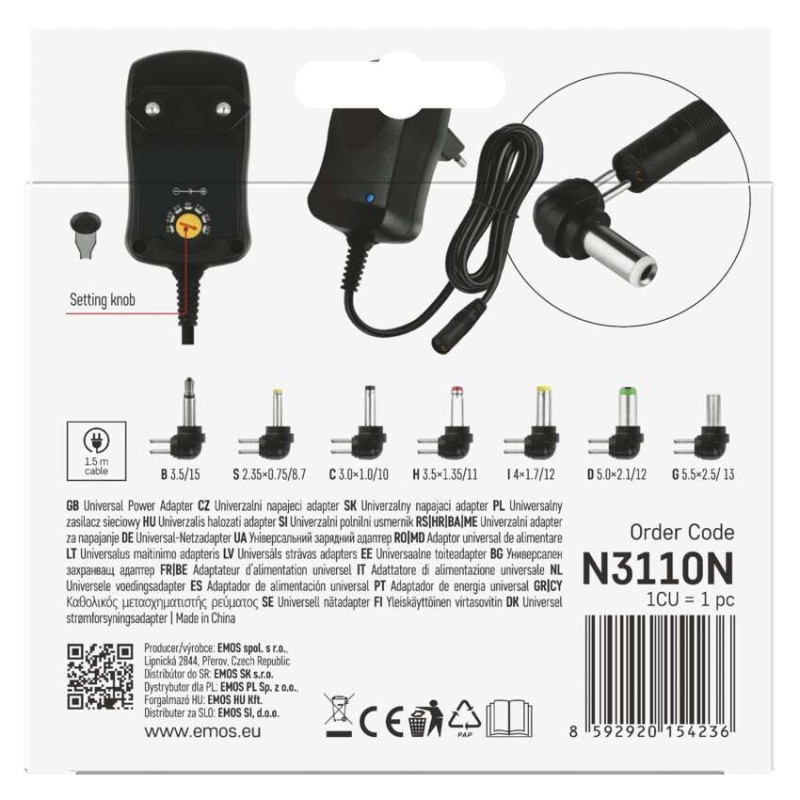 rozmer konektora: B 3,5/15; C 3,0x1,0/10; D 5,0x2,1/12; G 5,5x2,5/13; H 3,5x1,35/11; I 4x 1,7/12; S 2,35x0,75/8,7