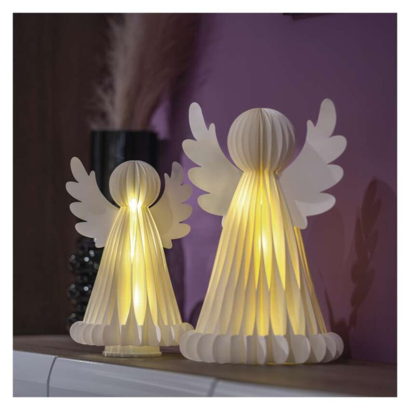 Vianočné papierové anjeli so stojanom, 2 ks, 28/38 cm, vnútorné