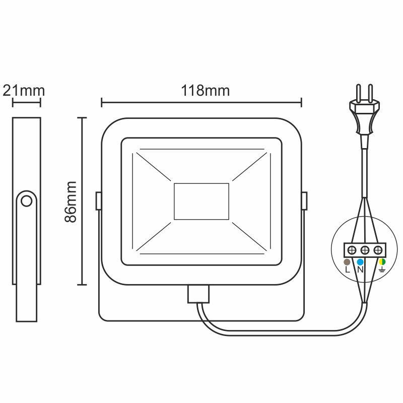 LED reflektor LF2121 v bielej farbe, s výkonom 10W, svietivosťou 900Lm a farbou svetla 4000K disponuje držiakom a vysokokvalitným LED čipom.