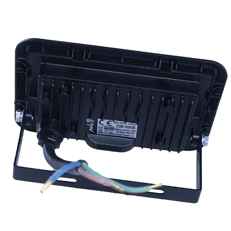 LED reflektor LF0022 v čiernej farbe, s výkonom 20W, svietivosťou 1600Lm a farbou svetla 4000K disponuje držiakom a vysokokvalitným LED čipom.