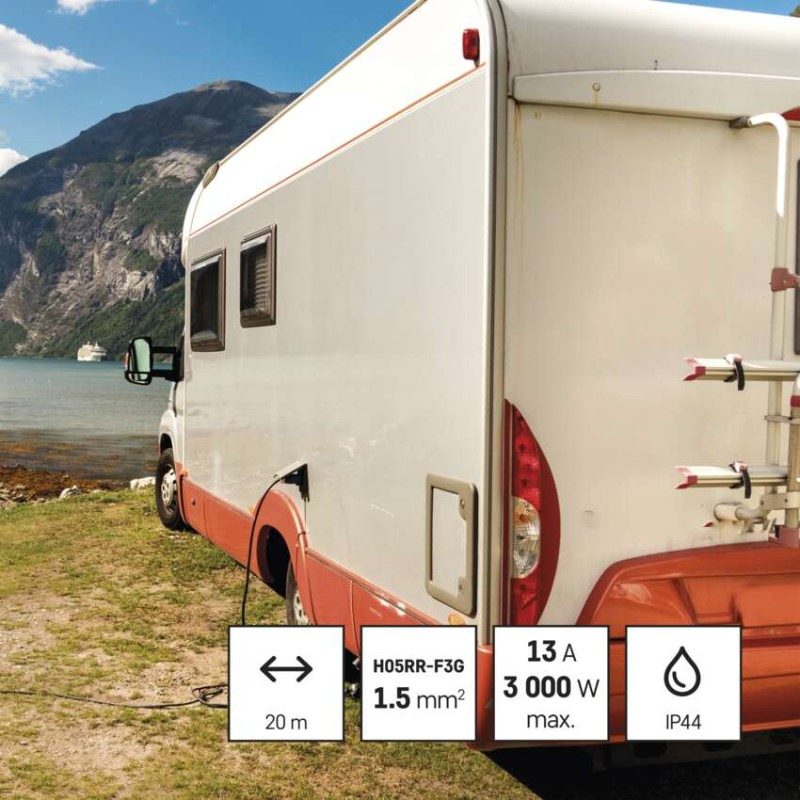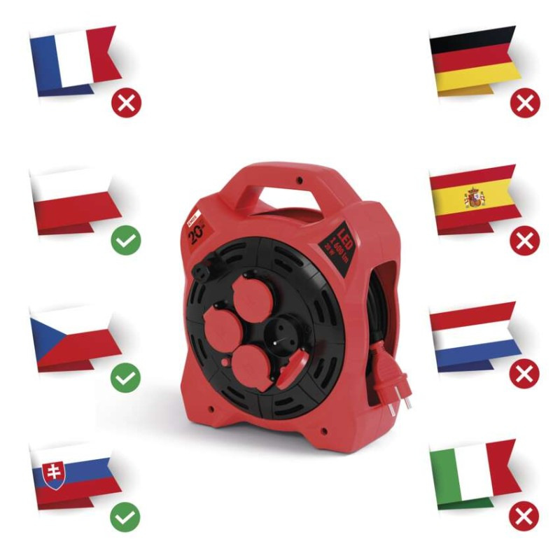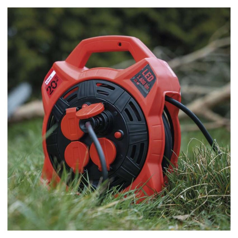 Vonkajší predlž. kábel na bubne 20 m / 4 zás. / guma / 230 V / 1,5 mm2 s reflektorom LED
