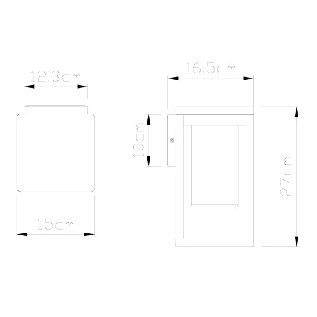 Vonkajšie, nástenné svietidlo, hliník, čierny matný, plast priehľadný, IP44, ŠxV:150x270, H: 165, be