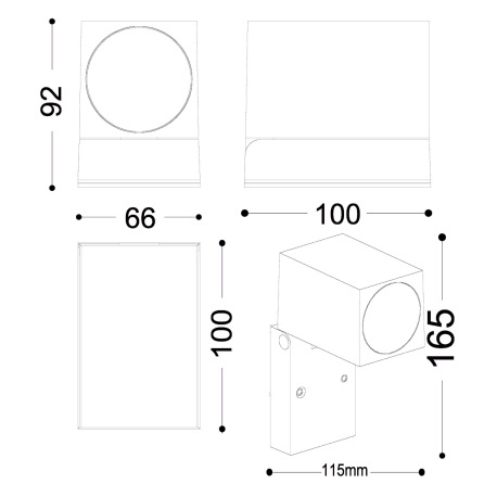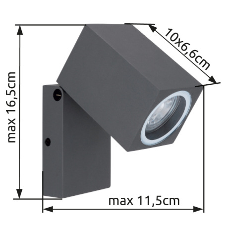 Vonkajšie svietidlo, hliník antracit, sklo priehľadné, otočné, nastaviteľné, IP44, ŠxV:65x165, H:115