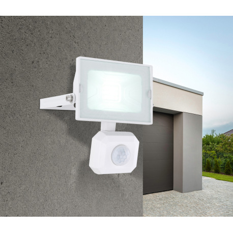 Vonkajšie svietidlo, hliník biely, sklo, nastaviteľné, IP44, snímač: V: 1 - 3 m, 110 °, detekcia až