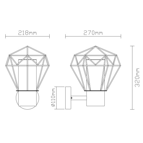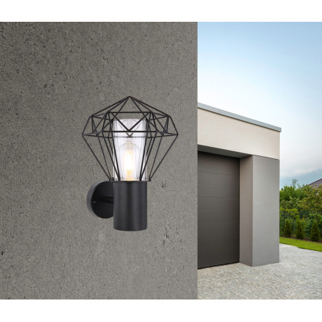 Vonkajšie svietidlo, nehrdzavejúca oceľ čierna, kov čierny, plast priehľadný, IP44, ŠxV: 225x310, H: