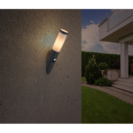 Vonkajšie svietidlo, nerez, antracit, plast biely, IP44, senzor: 90 °, dosah: 2-8m, Ø 76, V: 405, H: