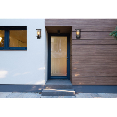 Vonkajšie svietidlo nerezová oceľ čierna matná, sklo dymové, kovové tyče čierne matné, vrátane senzo