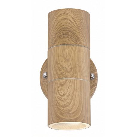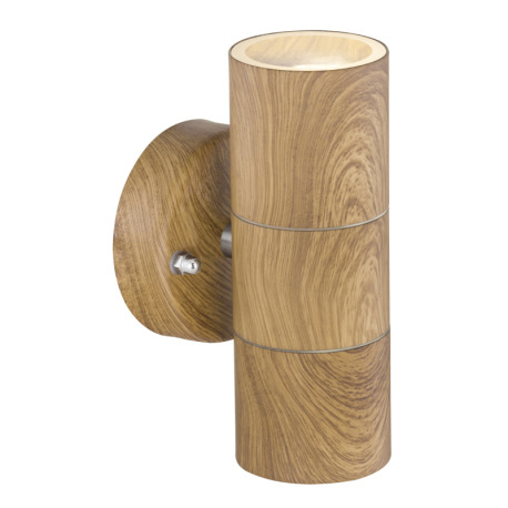 Vonkajšie svietidlo, nerezová oceľ, imitácia dreva, číre sklo, nástenné svietidlo svietiace hore a d