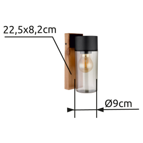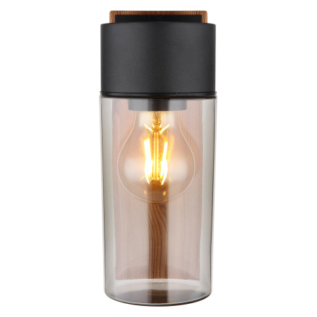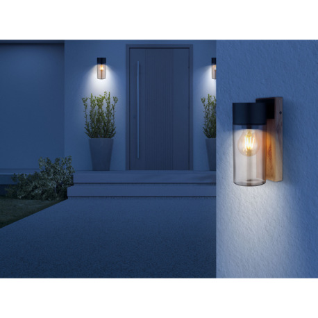 Vonkajšie svietidlo nerezová oceľ imitácia dreva, nerezová oceľ čierna matná, sklo dymovej farby, sm