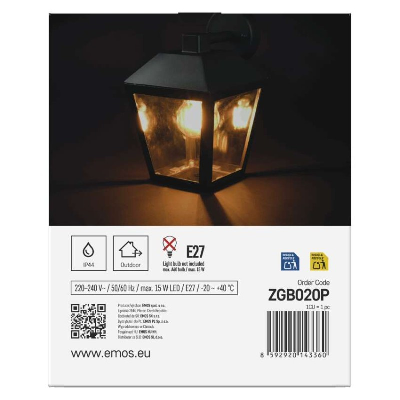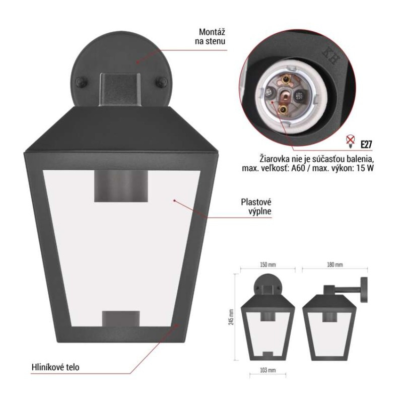 Záhradné nástenné svietidlo ADENIA, 18 x 15 x 24,5 cm, 1 x E27, 15 W