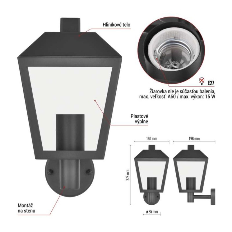 Záhradné nástenné svietidlo ADENIA, 19,8 x 15 x 27,8 cm, 1 x E27, 15 W