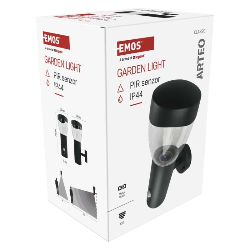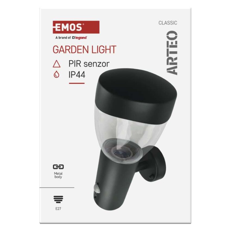 Záhradné nástenné svietidlo ARTEO, senzor súmraku, 16,4 x 12 x 29,5 cm, 1 x E27, 15 W
