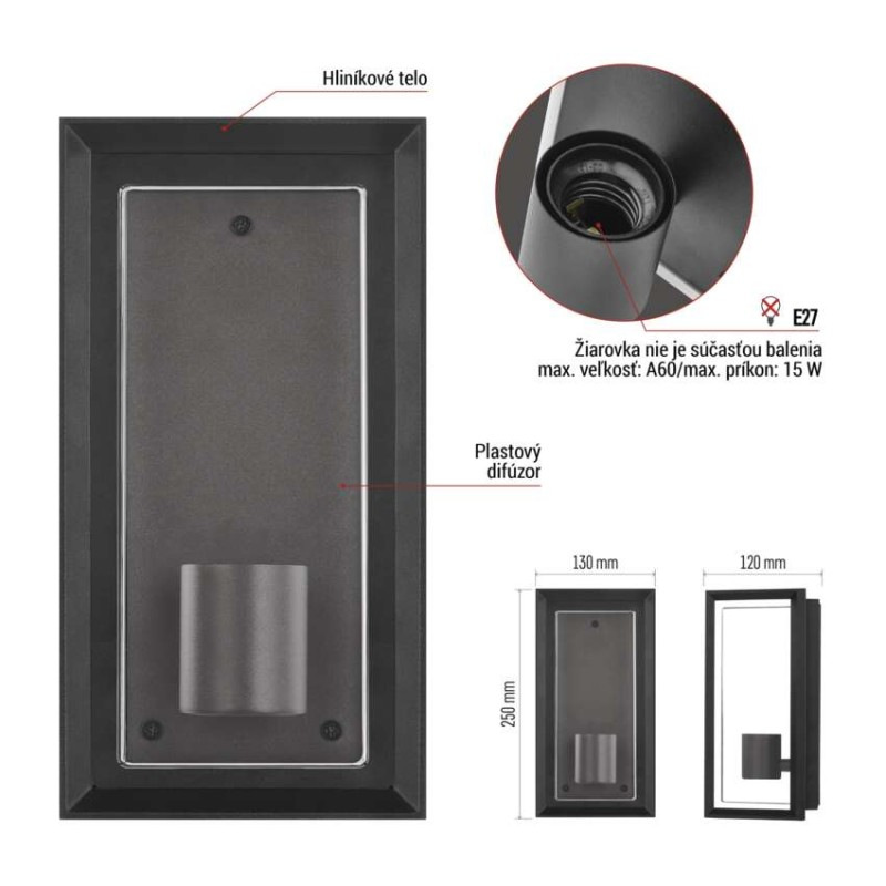 Záhradné nástenné svietidlo MALVA, 13 x 12 x 25 cm, 1 x E27, 15 W