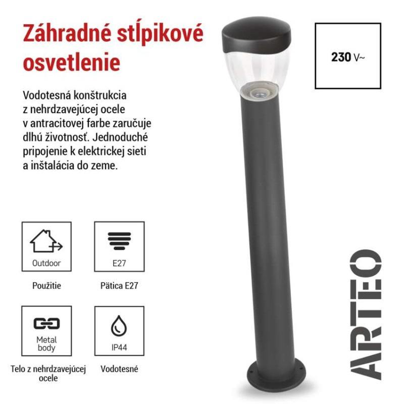 Záhradné stĺpikové svietidlo ARTEO, 12 x 12 x 80 cm, 1 x E27, 15 W