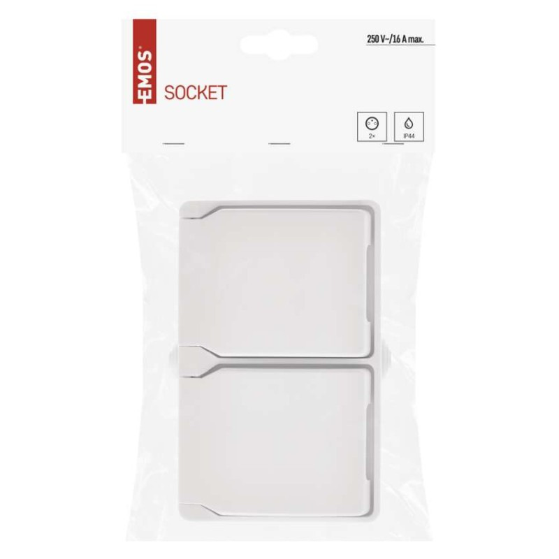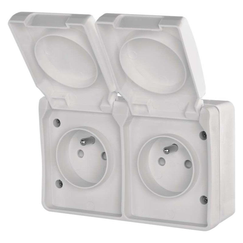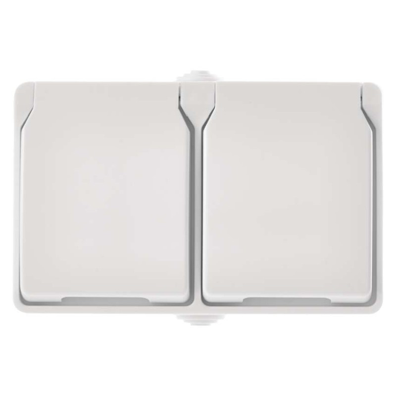 Zásuvka nástenná dvojitá, biela, IP44