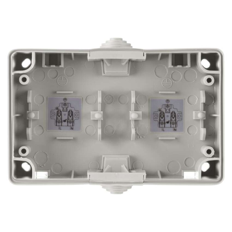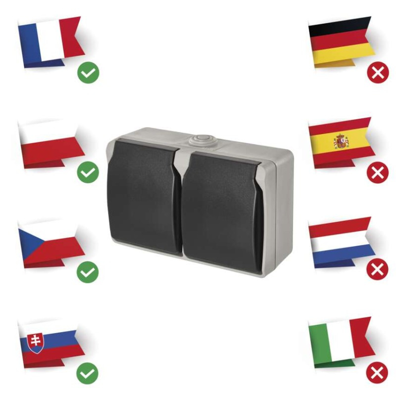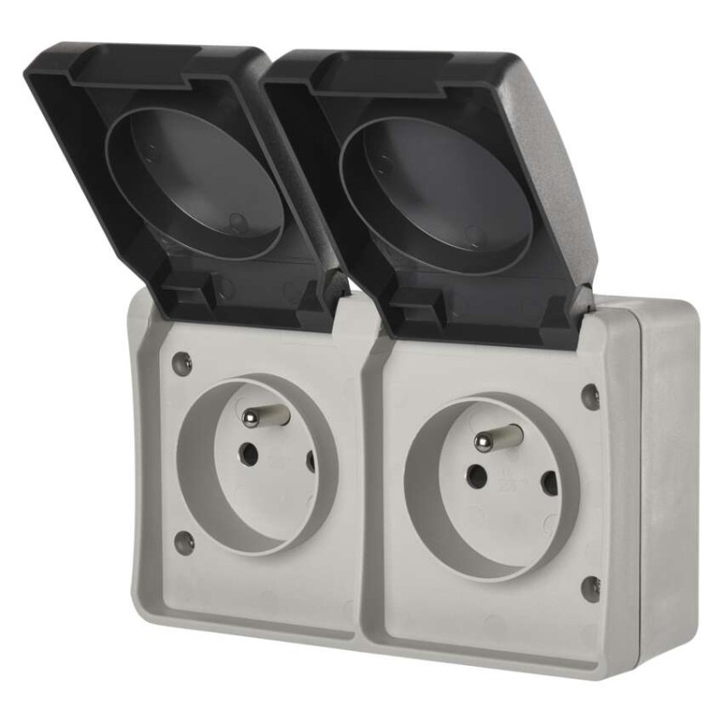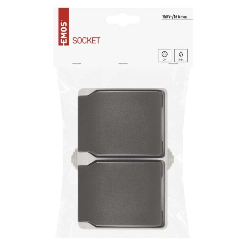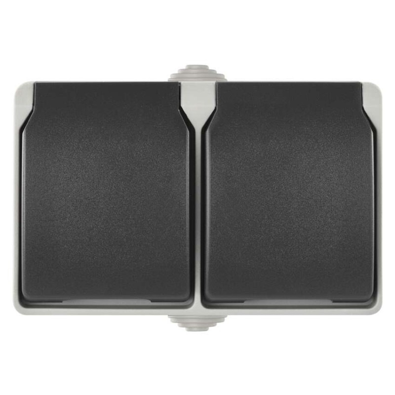 Zásuvka nástenná dvojitá, šedo-čierna, IP44