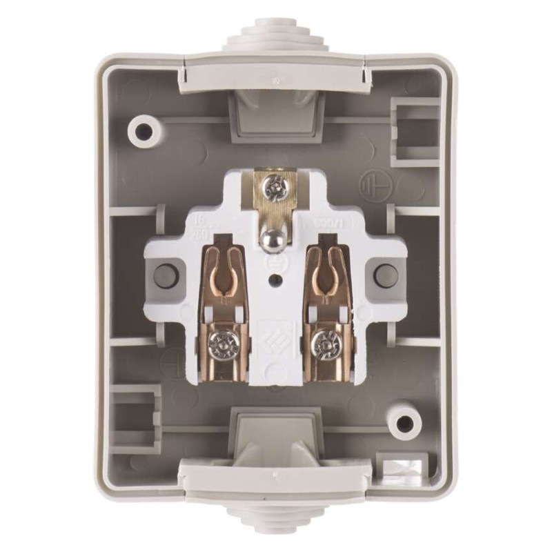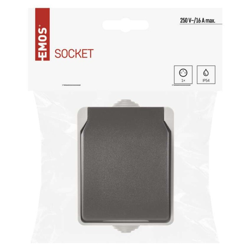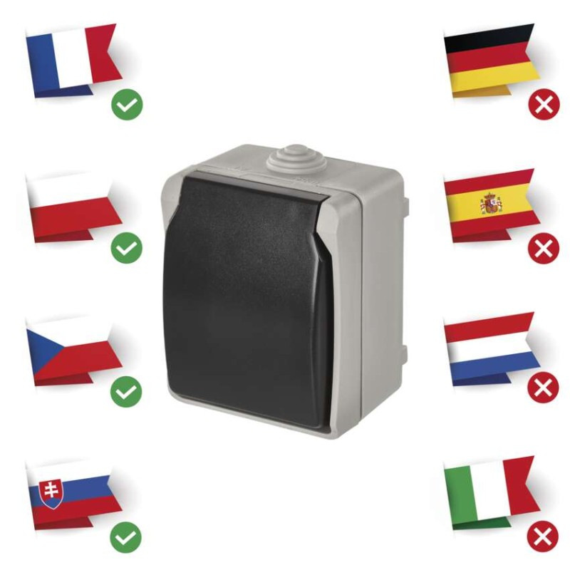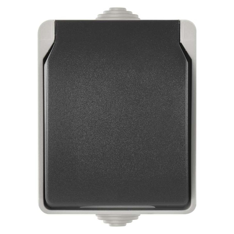 Zásuvka nástenná, šedo-čierna, IP54