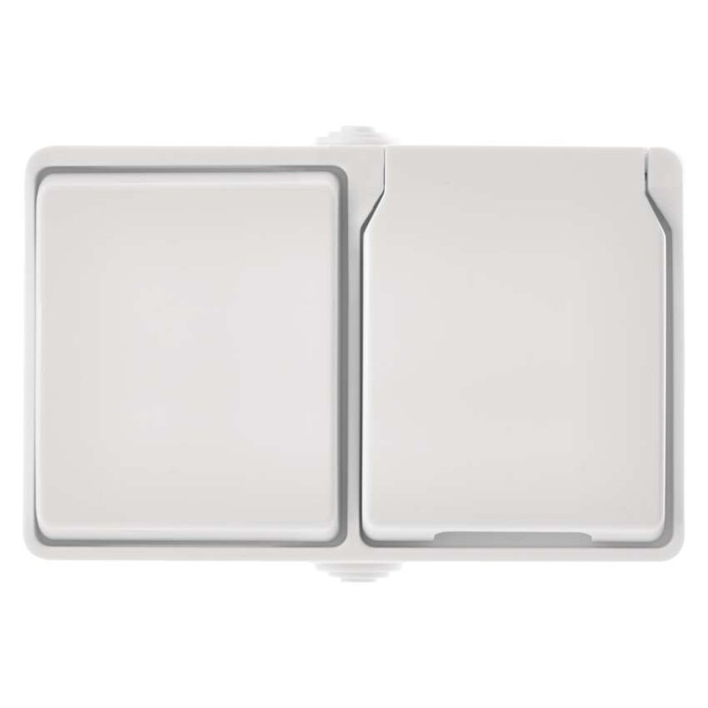 prevedenie: 2 nás. vodeodolné - 1 × zásuvka + 1 × prepínač striedavý