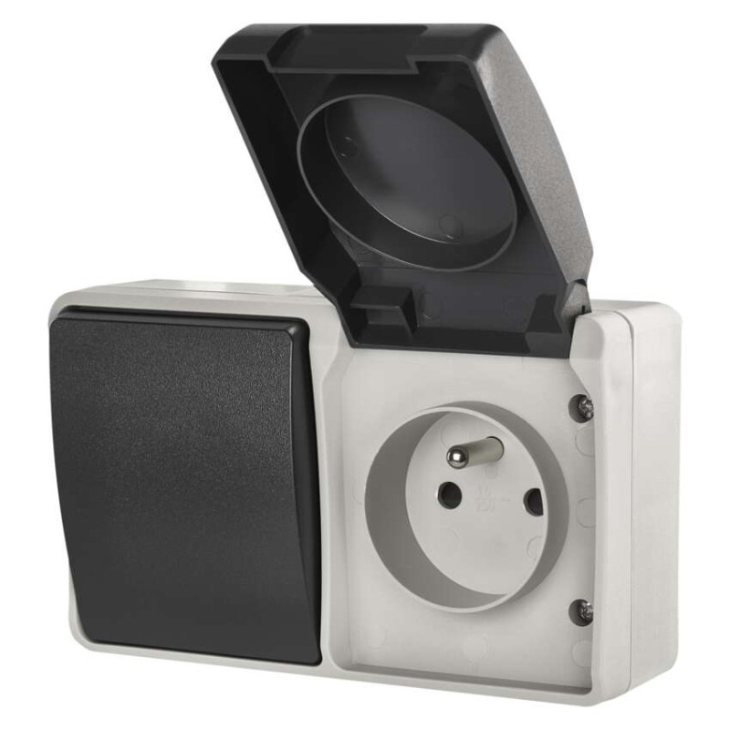 Zásuvka+Vypínač striedavý č.6 IP44 French čierná