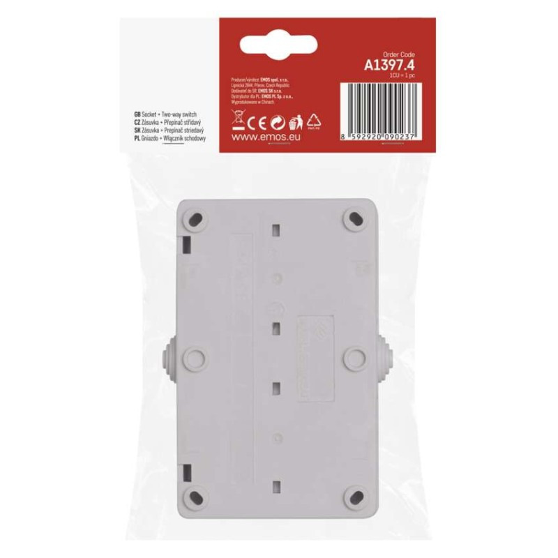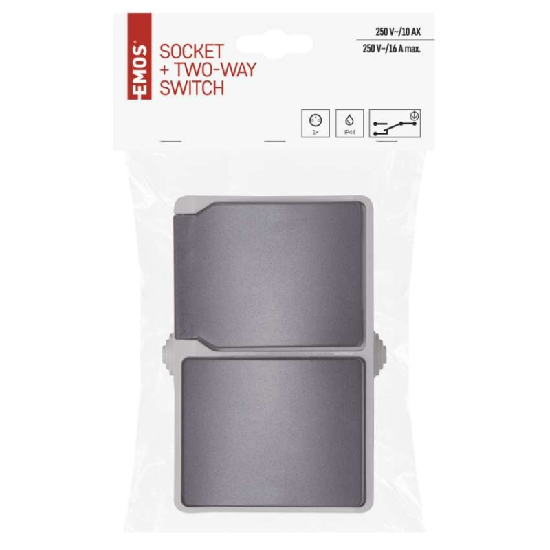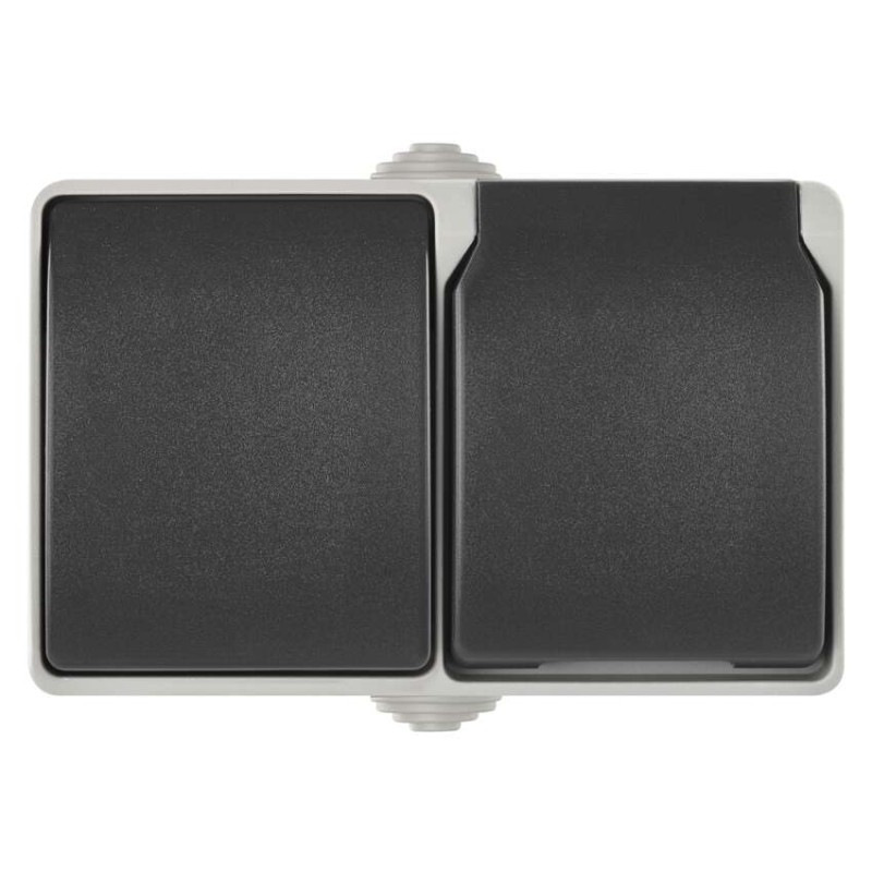 prevedenie: 2 nás. vodeodolné - 1 × zásuvka + 1 × prepínač striedavý